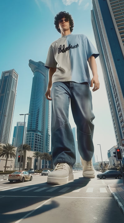 Half n Half T Shirt (Grey-Blue)